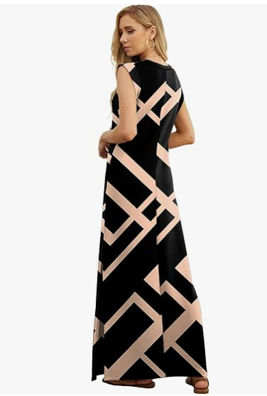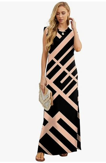 2025 Women Summer Round Neck Casual Loose Split Wrinkle-Free Long Maxi Beach Dress with Pockets (XS-3XL)