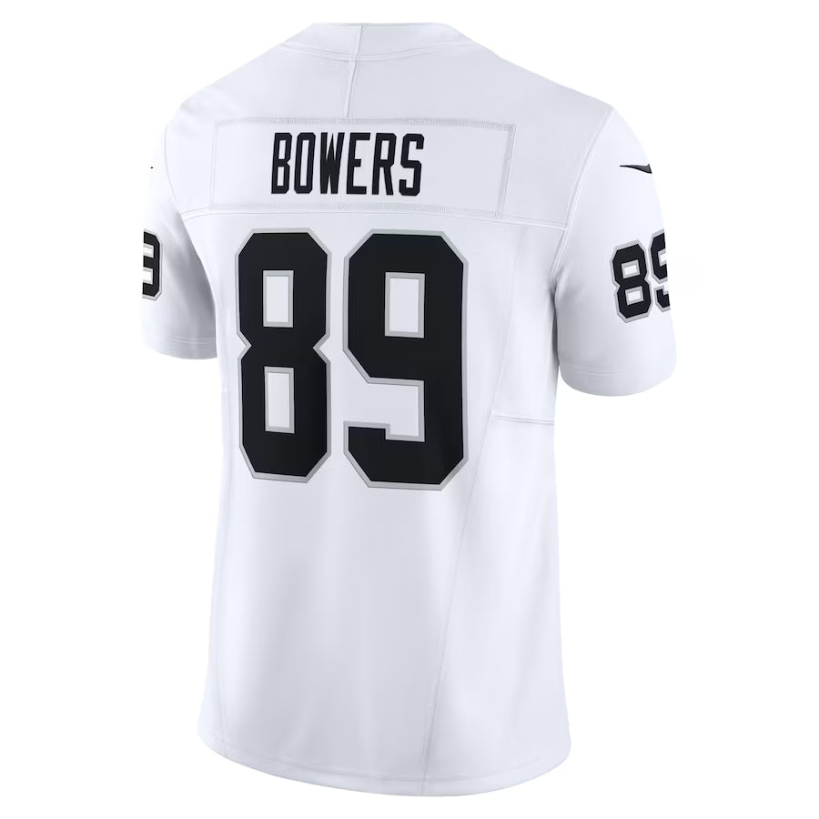 The LV.Raiders #89 Brock Bowers White Vapor F.U.S.E. Limited Jersey features premium stitched detailing and is crafted from high-performance materials for durability and comfort. Designed for collectors and fans alike, this authentic American football jersey delivers an impeccable fit and vibrant team colors, making it an essential piece for showcasing support with elite-level style and quality.