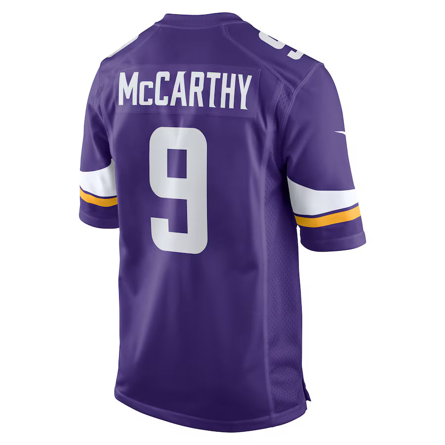 Show your support for the MN Vikings with the #9 J.J. McCarthy Purple Game Jersey. This stitched American football jersey combines authentic team colors and durable construction, offering comfort and long-lasting wear. Perfect for dedicated fans and collectors, it reflects the professional quality and style of game-day gear.