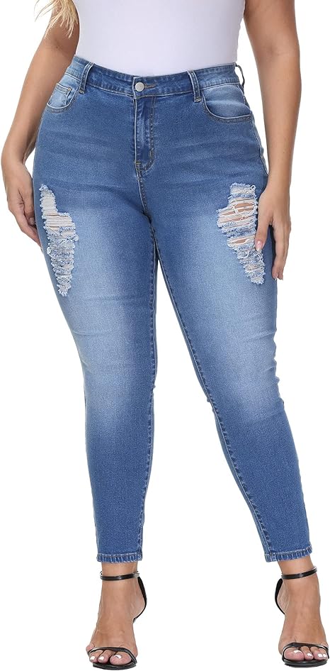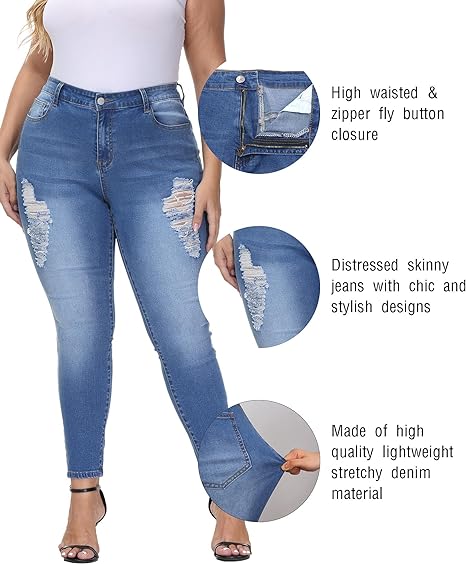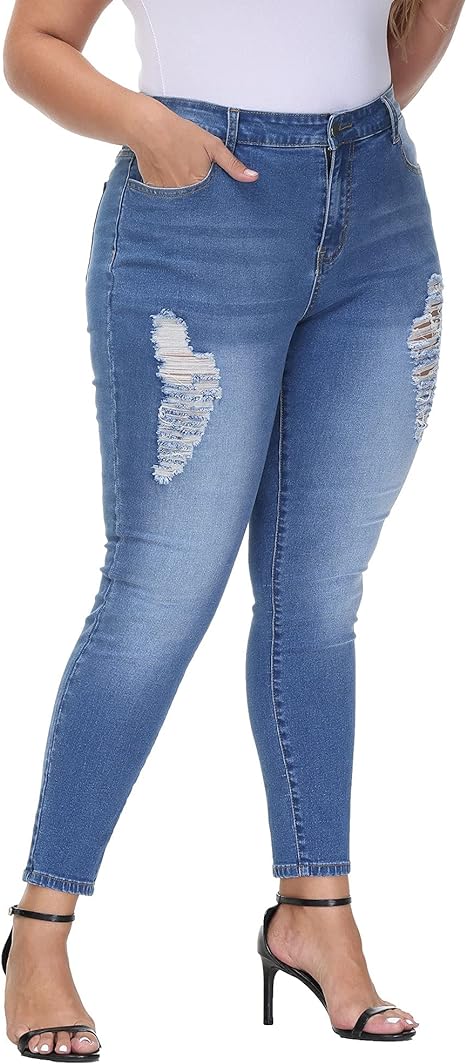 Womens Plus Size Skinny Jeans Stretchy High Waisted Ankle Jean