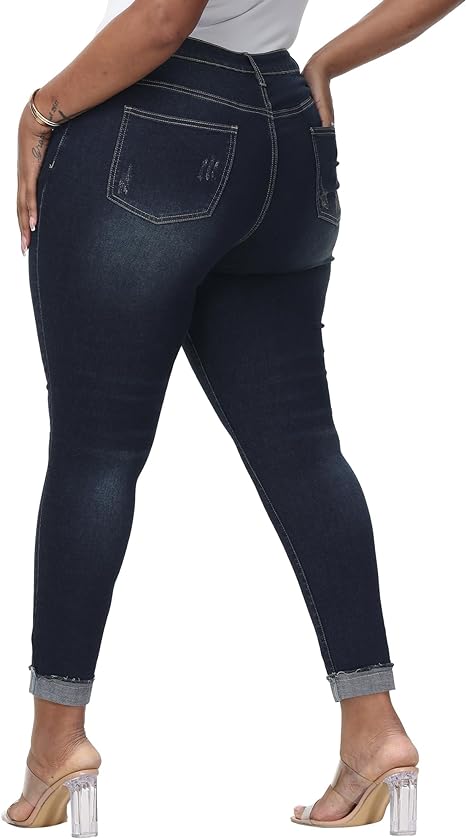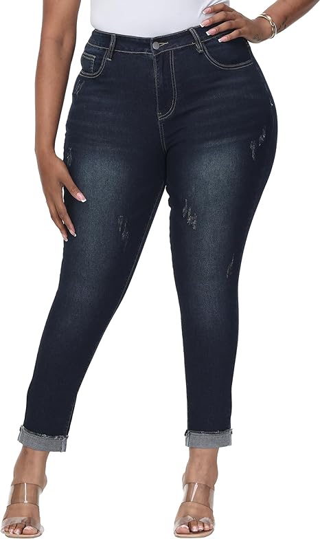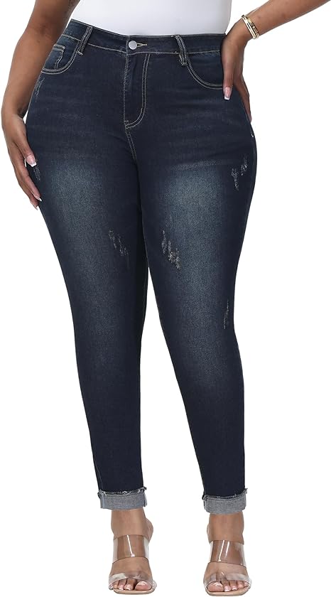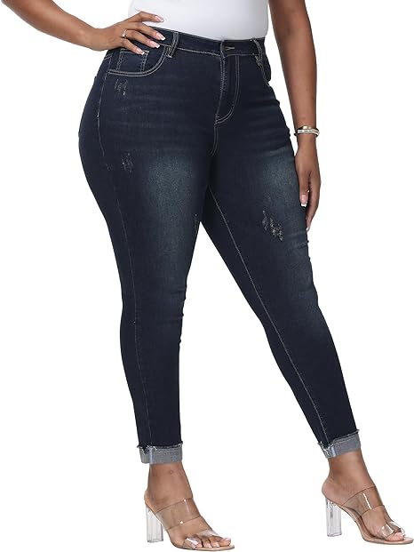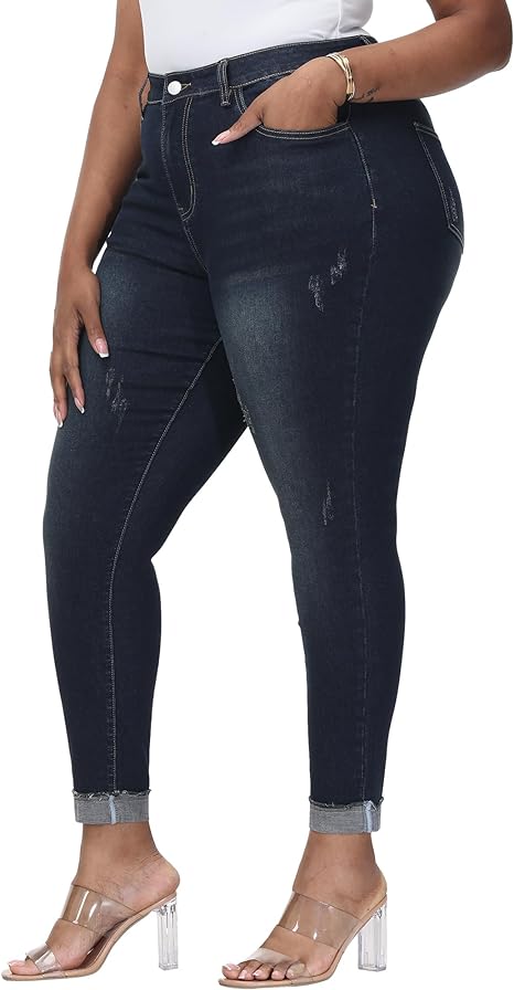 Womens Plus Size Skinny Jeans Stretchy High Waisted Classic Ankle Jean
