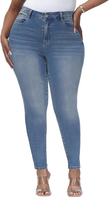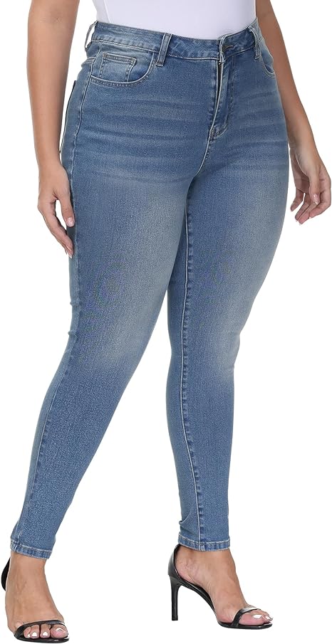 Womens Plus Size Skinny Jeans Stretchy High Waisted Classic Ankle Jean