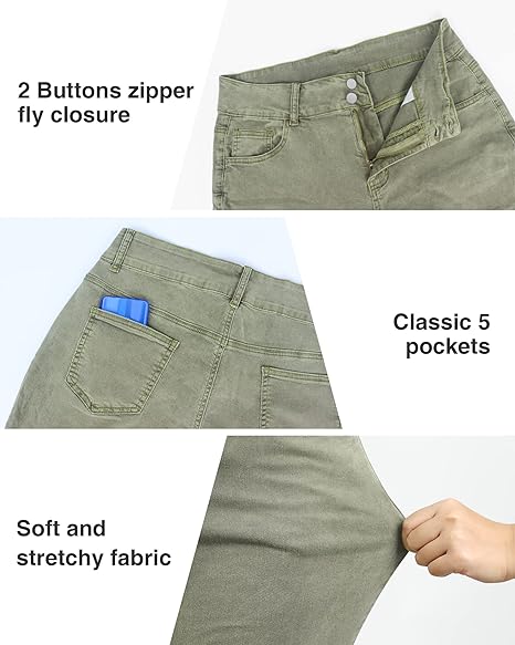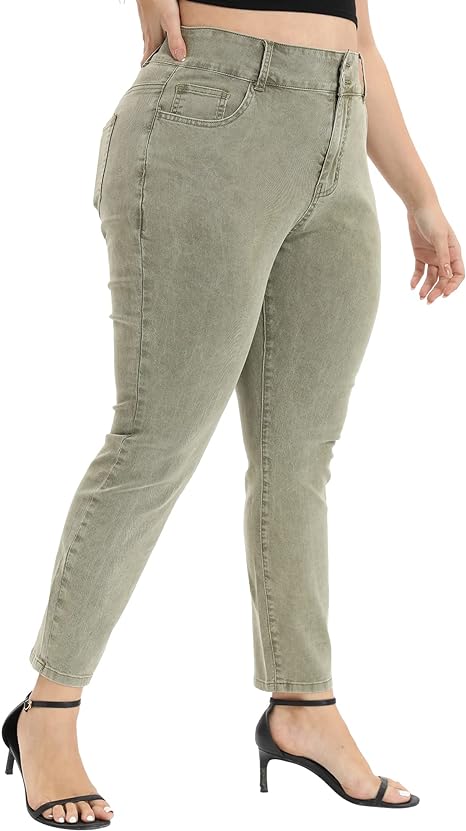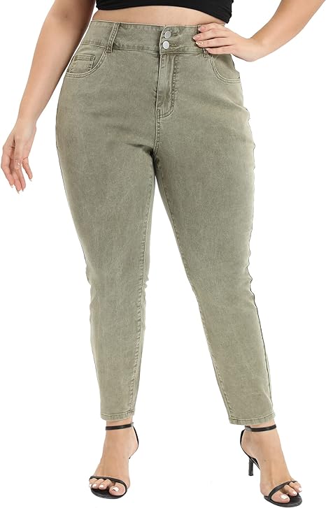 High waisted Skinny Pants - These plus-size tapered pants are featuring high-rise, skinny fit style, classic 5 pockets, ankle length, button zip fly.